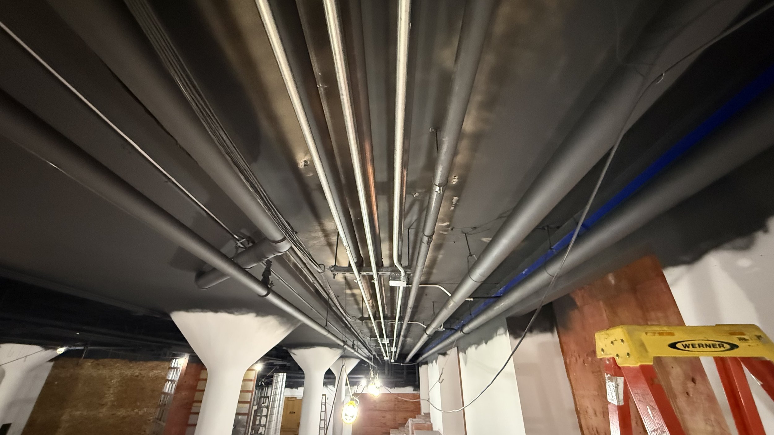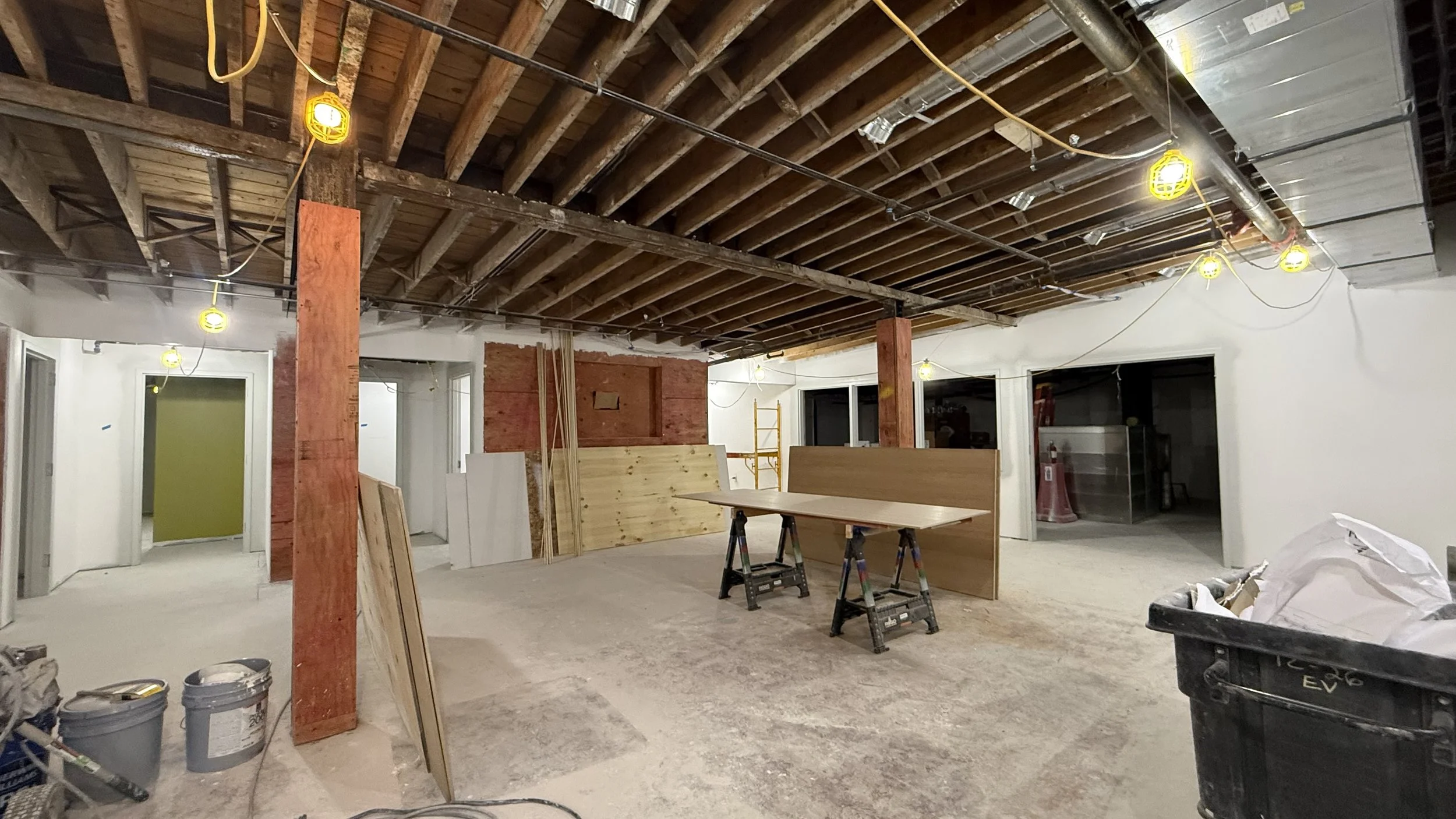 Exciting visible changes to the space will come in throughout the rest of this month—we’ll see colors and finishes start to go up, and we’ll even be pouring an epoxy floor in the Maker Space/Creative Studio and begin bathroom tiling so we can get fixtures installed.