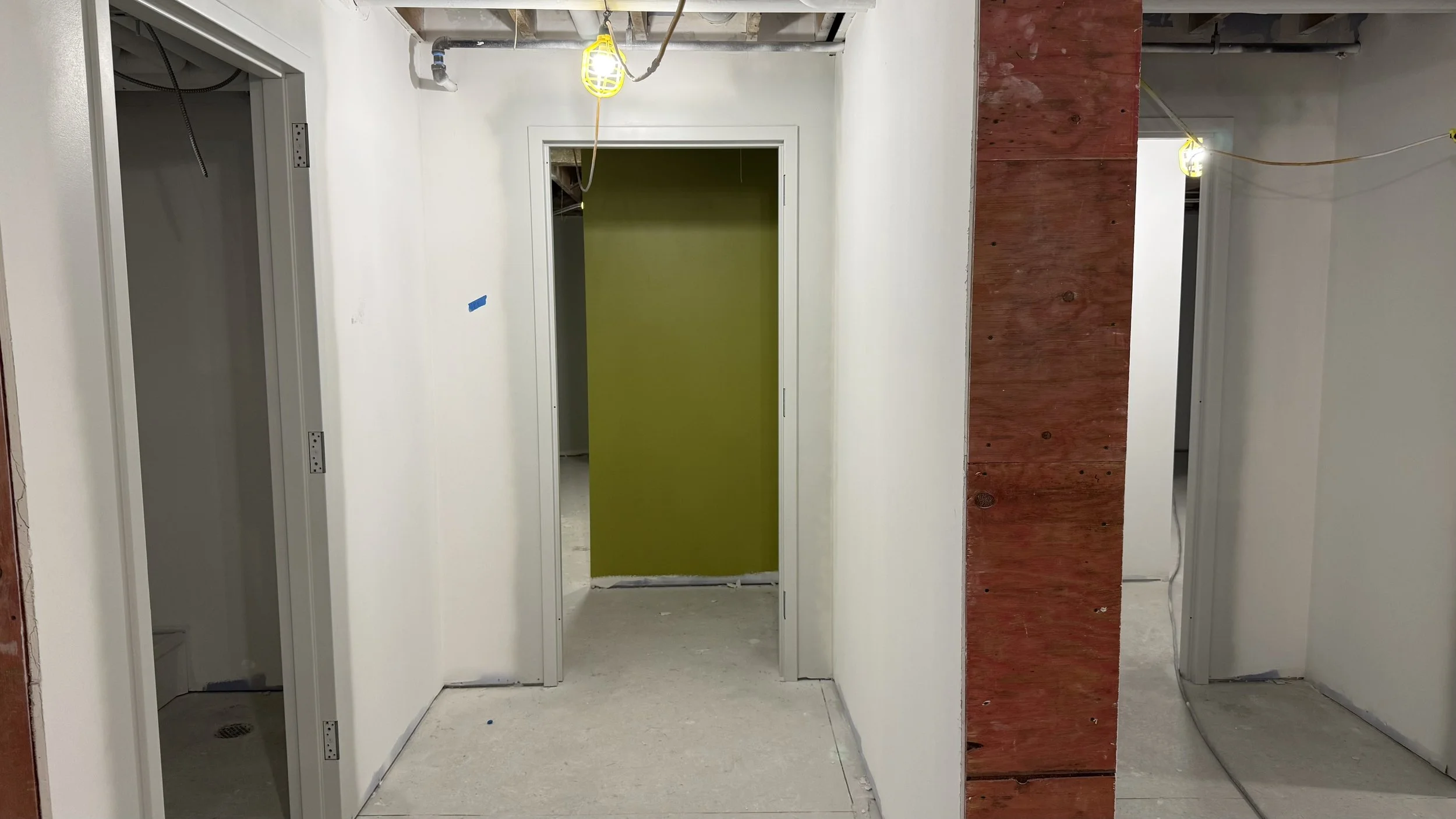 The past two weeks have brought some exciting changes to the new Youth Ministry center taking shape in our lower level! The drywall is completed (goodbye, dust!) and all the walls have been primed and, as you’ll see, we’re even seeing some colors going up! (that green, wow!)