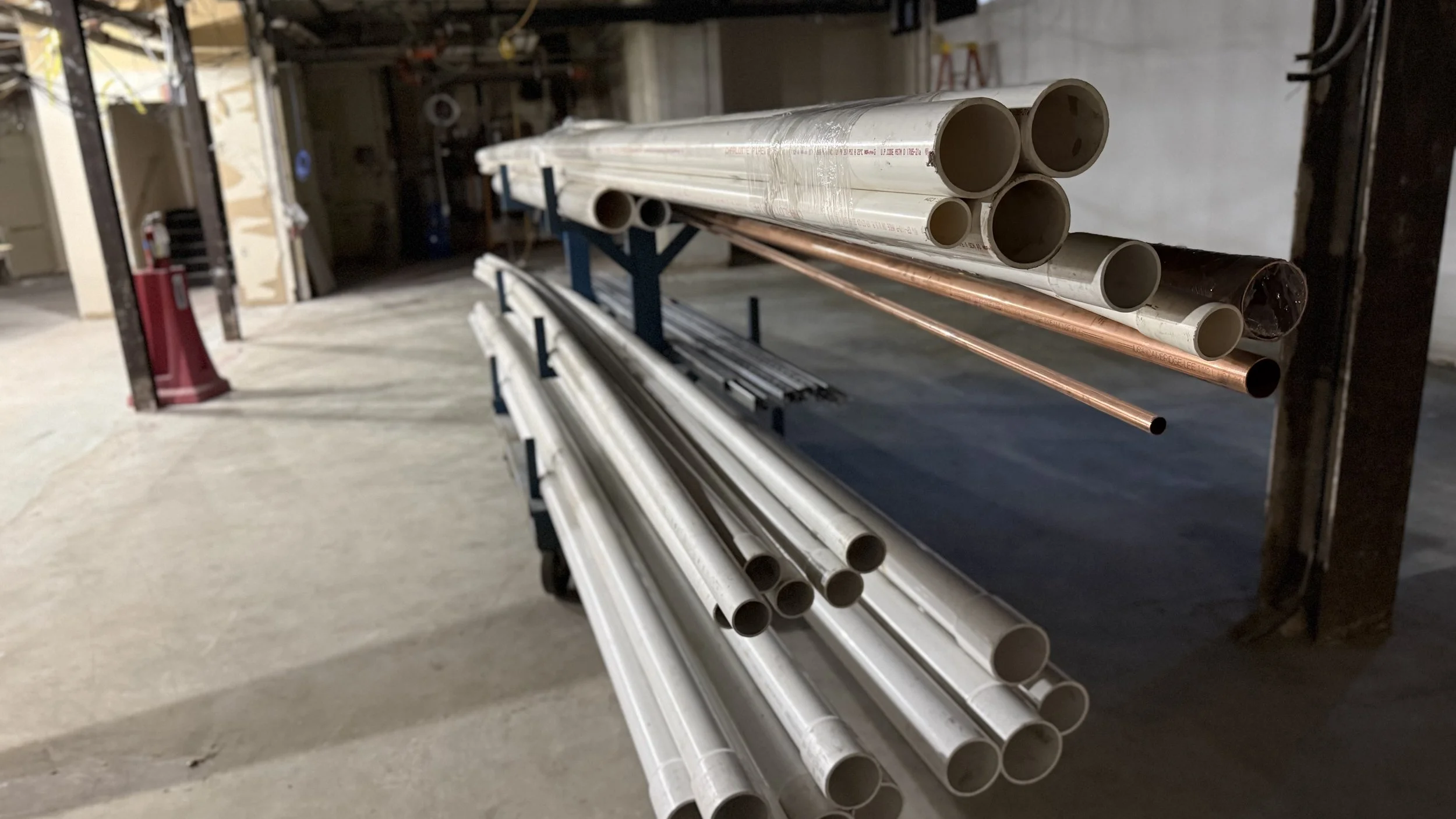 This rough project timeline shows a visual indicator (blue bar) of approximate time to complete each part of the project. We are nearing the end of our third part, “Underground Plumbing and Infill/Pour Trenches.” These trenches were made to plumb bathroom fixtures, showers, and other water lines. Here are some pictures of what that part of the job looks like. (You can click/tap on an image to make it larger)